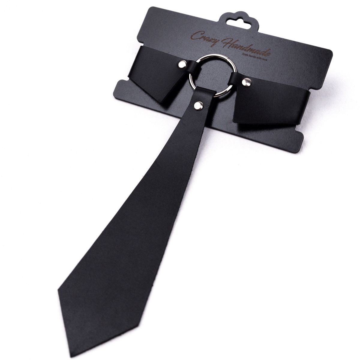 Чокер Галстук с колечком выполнен из натуральной кожи.