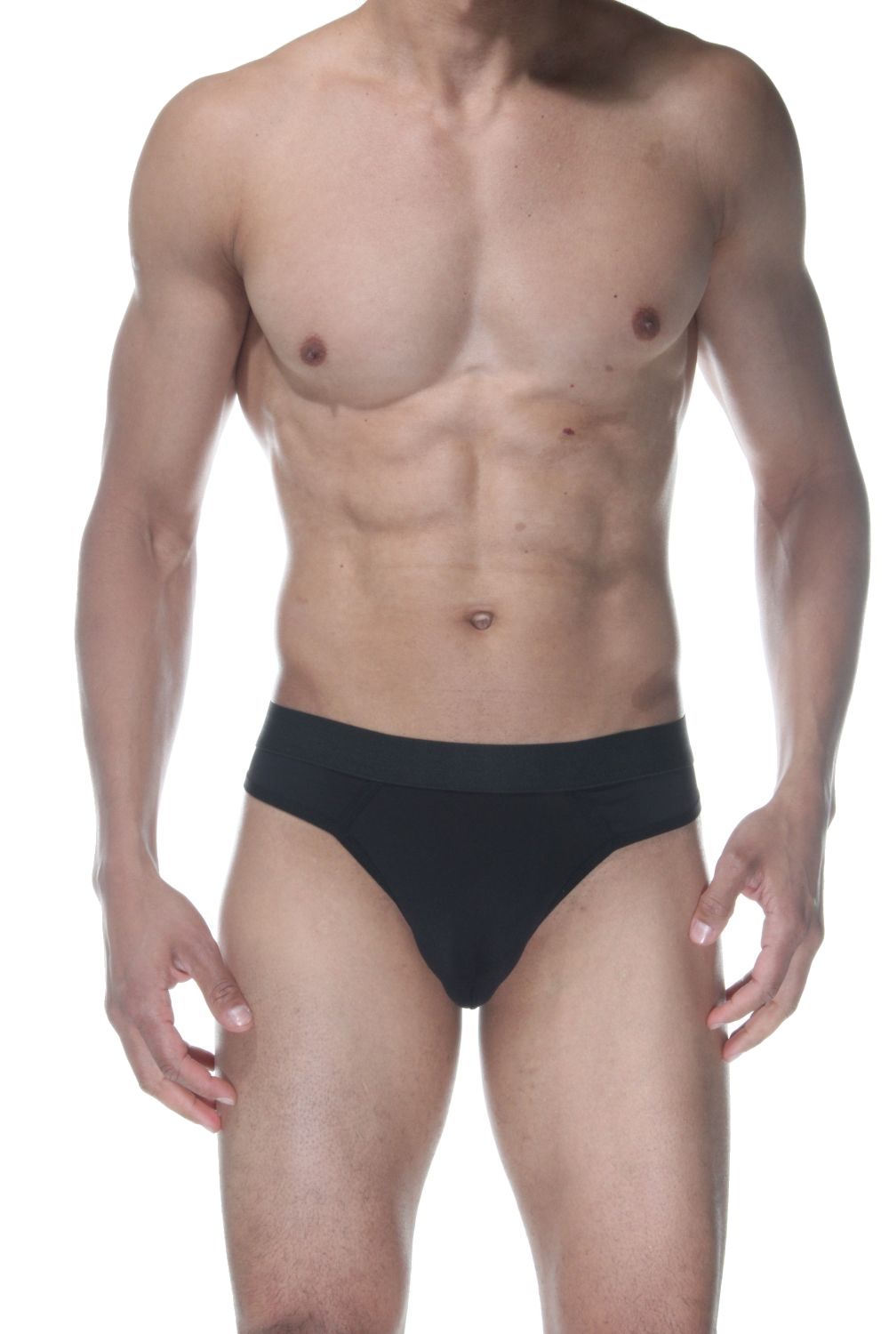 Черные мужские трусы-стринги с широкой резинкой.