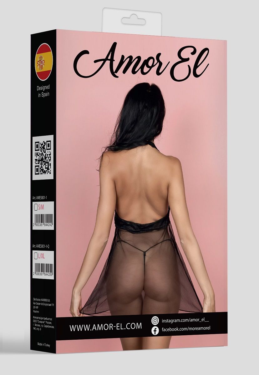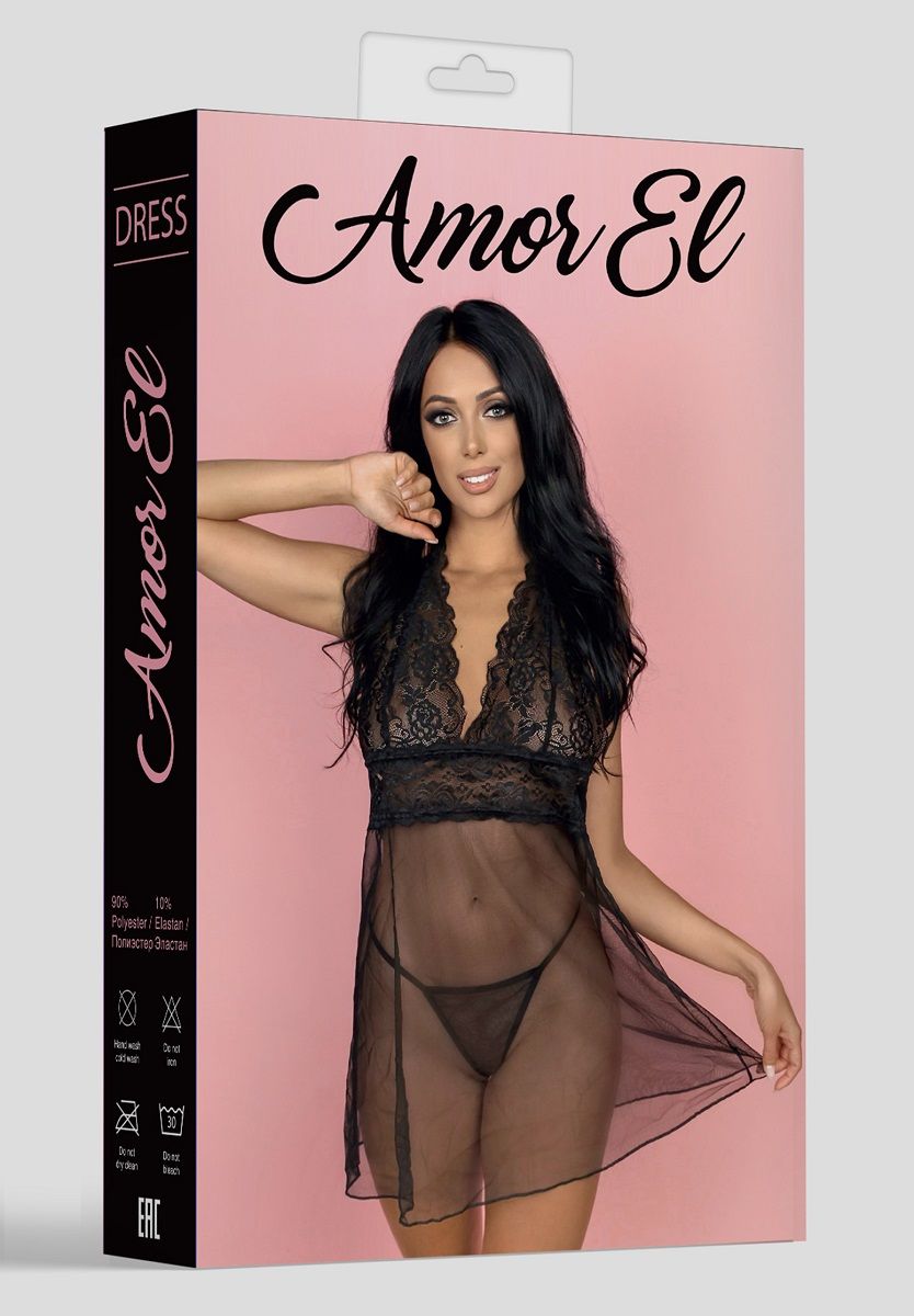 Эротический прозрачный бэби-долл с кружевным верхом и обнаженной спинкой. Трусики не входят в комплект!