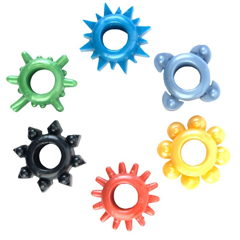 Пусть секс будет радужным! Эти разноцветные эрекционные колечки внесут некоторое разнообразие в вашу сексуальную жизнь. Все они сделаны из силикона и прекрасно растягиваются. Кроме того, приводят ваш член в состояние боевой готовности. Однако каждая имеет свой рельеф. Все эти шишечки, шипы и усики будут стимулировать клитор партнерши.