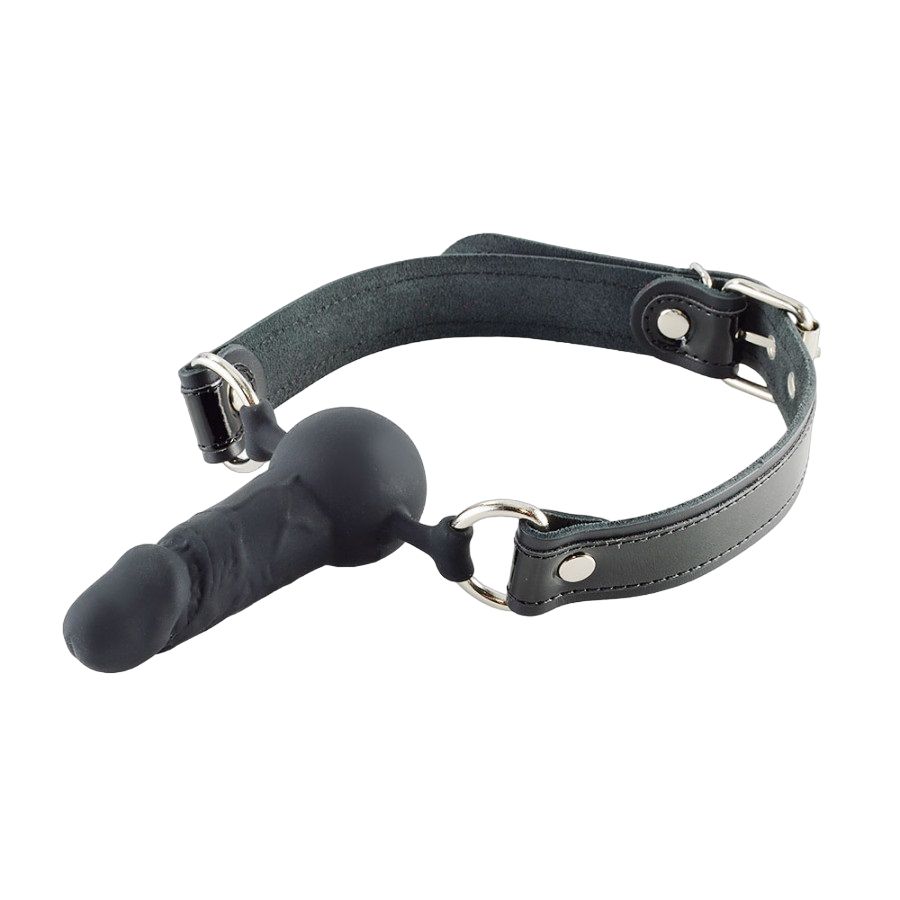 Кляп-фаллос изготовлен из силикона. Ремешки - натуральная кожа. Регулируется при помощи пряжки.