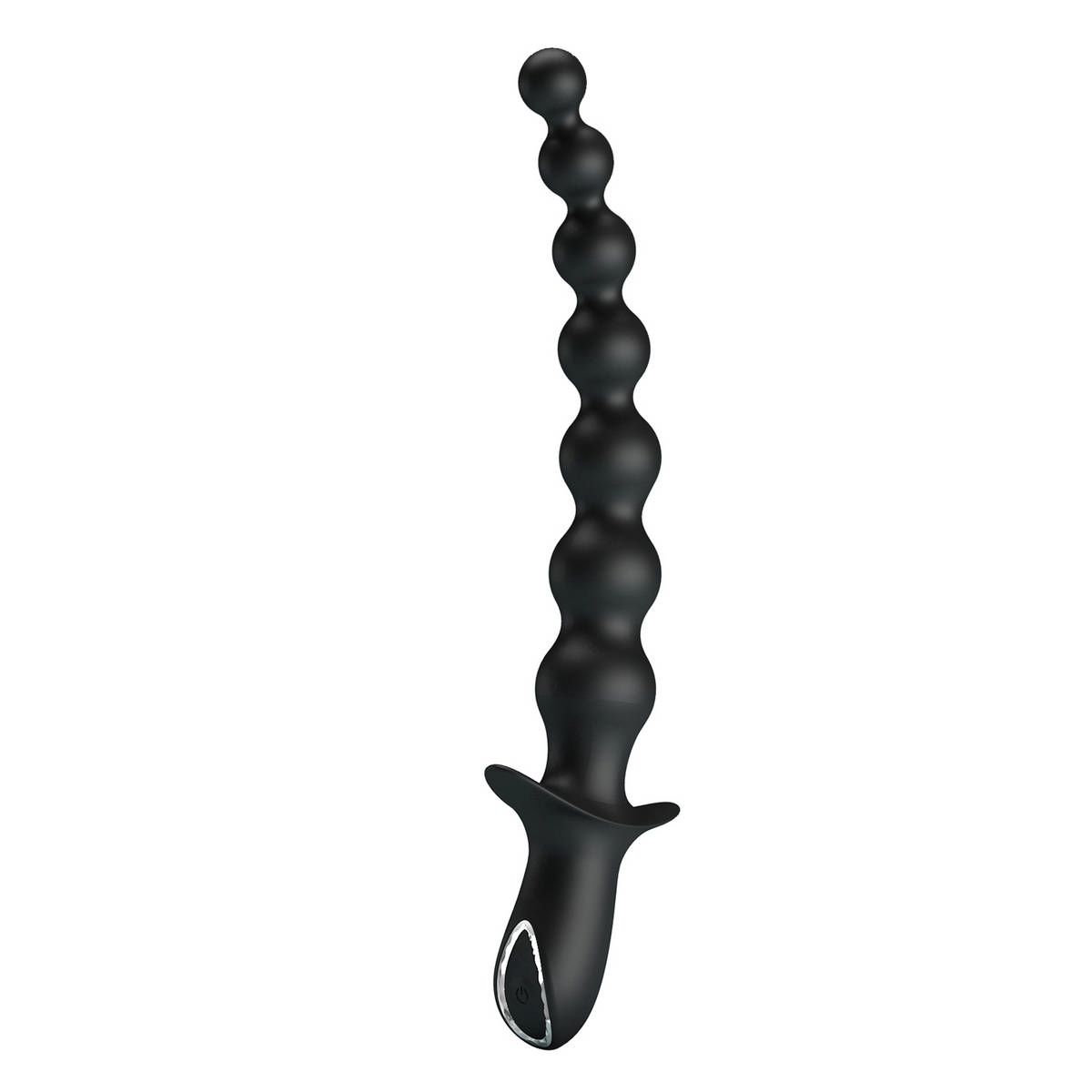 Черная анальная ёлочка с мощной вибрацией Rigdon. 7 бусин разного диаметра. Минимальный диаметр - 1,8 см.