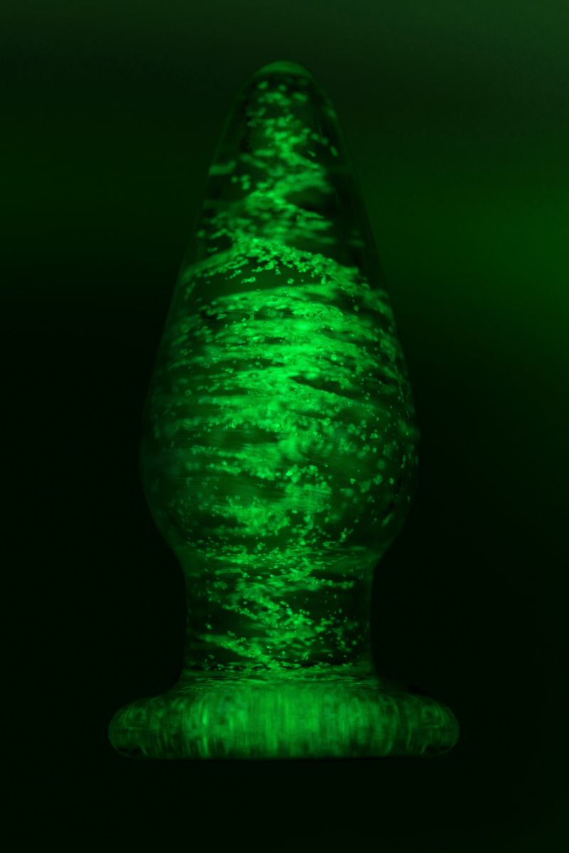 Прозрачная анальная втулка из закаленного стекла содержит флуоресцентные микрочастицы, которые светятся в темноте. Такой необычный дизайн помогает внести в интимные игры разнообразие. Достаточно зарядить игрушку под дневным или искусственным светом, чтобы насладиться ее мерцанием и свечением в темноте. Оптимальный размер, обтекаемая форма конуса и наличие ограничителя делают использование анальной игрушки безопасным.